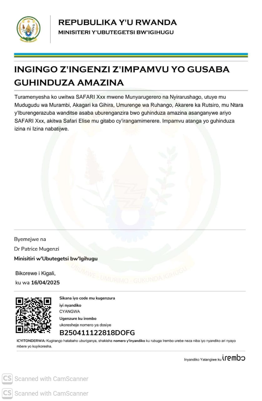 AmatangazoGuhindura Izina Guhindura amazina asanganywe ariyo Safari Xxx akitwa Safari Elise mu gitabo cy’irangamimerere Yanditswe 04/03/2026 Share SHARE Tanga igitekerezo Leave a Reply Cancel replyYour email address will not be published. Required fields are marked *Comment * Name * Email * Website Save my name, email, and website in this browser for the next time I comment. Kwamamaza Kwamamaza Kwamamaza