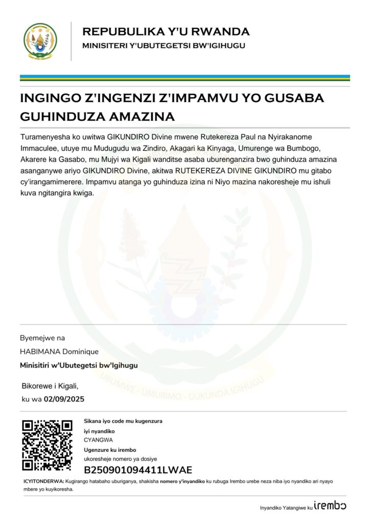 Gusaba guhindura amazina Gikundiro Divine akitwa Rutekereza Divine Gikundiro