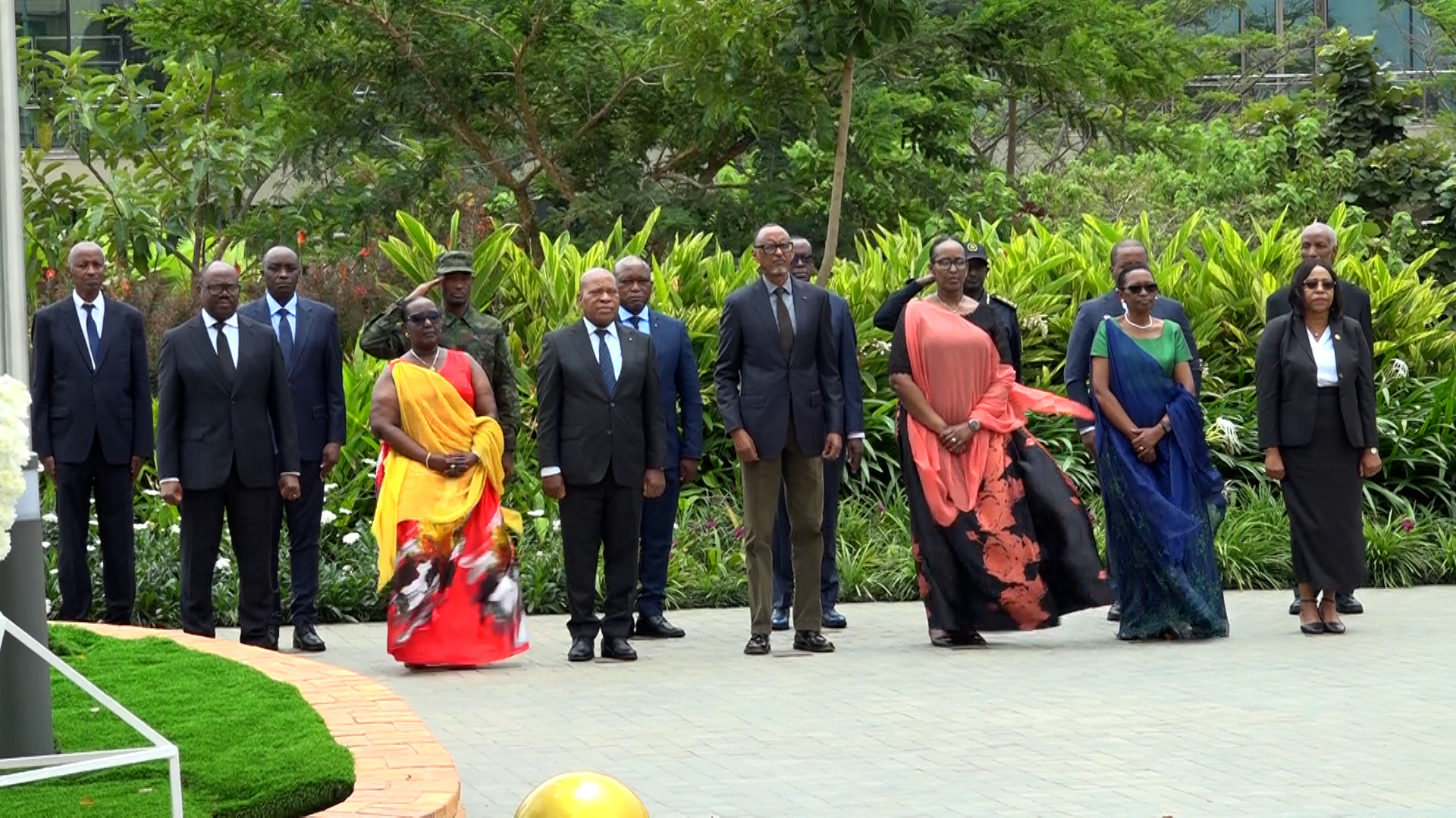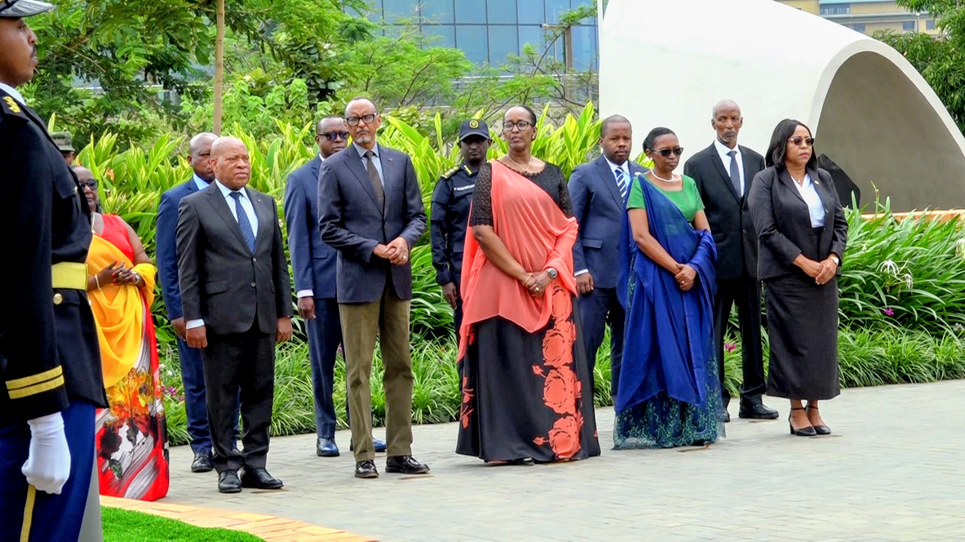 Nyuma yo gushyira indabo ku kimenyetso cy’ubutwari aba banyacyubahiro bafashe umunota wo kuzirikana intwari z’igihugu zatabarutse.